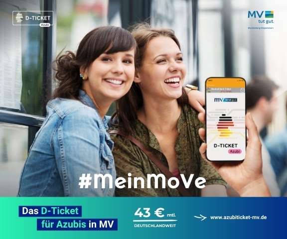 Mit dem Deutschland-Ticket für Azubis in Mecklenburg-Vorpommern kannst Du für monatlich 38 Euro ganz Deutschland entdecken – im Job und in der Freizeit. Die Differenz zu 58 Euro – 20 Euro – übernimmt das Land Mecklenburg-Vorpommern für Dich. Nutze alle Nahverkehrszüge (2. Klasse), Straßenbahnen, Stadt- und Regionalbusse sowie für weitere ausgewählte Verkehrsmittel.