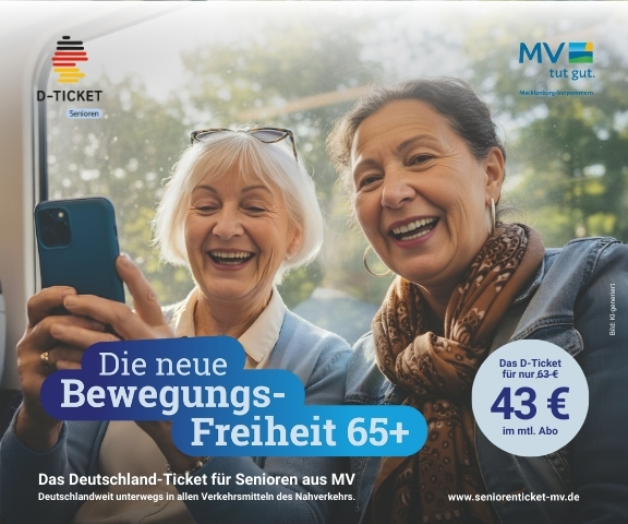 Mit dem Deutschland-Ticket für Senioren aus Mecklenburg-Vorpommern haben Sie die Möglichkeit, ganz Deutschland für nur 38 Euro pro Monat zu entdecken. Das Land Mecklenburg-Vorpommern übernimmt die Differenz von 20 Euro zum regulären Preis von 58 Euro für Sie.